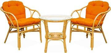 Záhradný nábytok Aga Ratanová sestava Sita Světle hnědá / Oranžová:Chcete si užívat léta na zahradě či terase? Zahradní nábytek Aga využijete při každé příležitosti. K jeho zhotovení byl použitý kvalitní materiál, jakým je ratan. Díky nízké hmotnosti se snadno přenáší. Deska stolu z tohoto setu má tvar kruhu o průměru 55 cm. Na výšku měří 55 cm. Přidaný polstr na židli poskytuje komfort při sezení. Základní přednosti zahradního nábytku Aga Ratanová sestava Sita Světle hnědá / Oranžová Materiál zahradního nábytku: ratan Stůl je vysoký 55 cm Stůl v setu Aga Ratanová sestava Sita Světle hnědá / Oranžová nabídne plochu s průměrem 55 cm K výrobě desky stolu posloužil kvalitní materiál, jakým je sklo S pomocí polstrování se vám bude pohodlně sedět Nosnost židlí: 100 kg Počet židlí v sadě: 2 Materiál sedáku židle: ratan Materiál desky stolu: sklo
