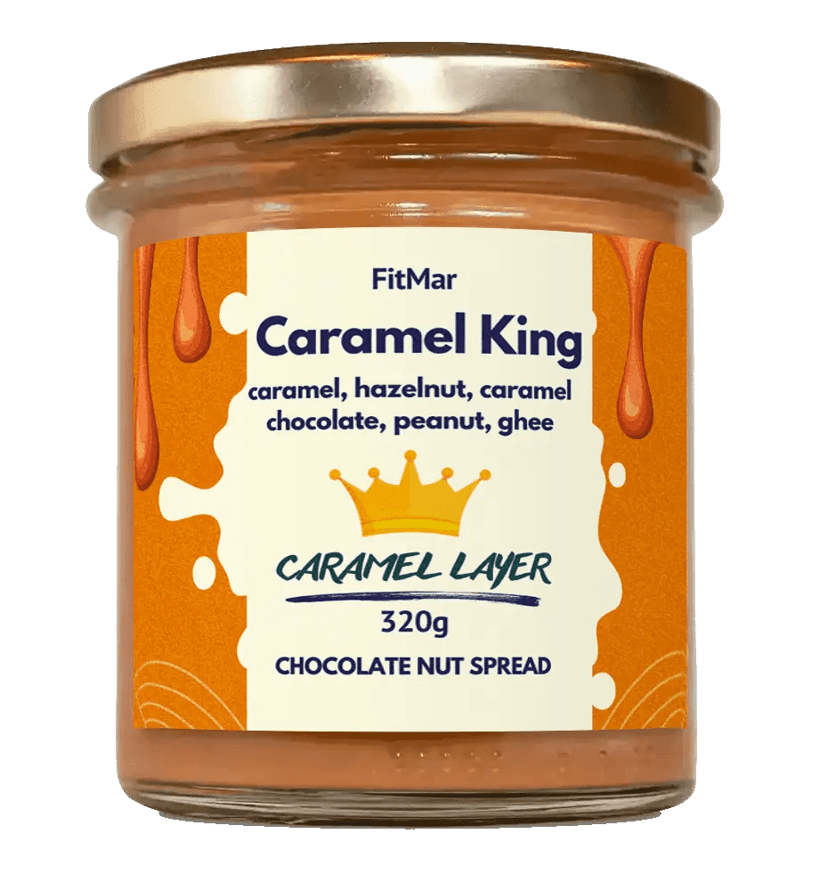 Caramel King – luxusní oříškový krém s karamelovou vrstvou na povrchu Král karamelových chutí. Poctivý ořechový krém z nasucho pražených arašídů a lískových ořechů, zjemněný karamelovou čokoládou a ghí, s tekutou vrstvou karamelu na povrchu. Vyvážená chuť, která evokuje skvělou chuť oblíbené tyčinky. Tipy na použití Klíčové výhody ✅ Tekutá karamelová vrstva✅ Prémiové na sucho pražené ořechy✅ Bez palmového oleje✅ Bez konzervantů✅ Bez chemie✅ Bez lepku✅ Sametová textura✅ Příchuť oblíbené tyčinky✅ Vyrobeno v Česku Mlsání bez výčitek Mlsání bez výčitek: Poctivý ořechový krém s tekutou vrstvou karamelu – z nasucho pražených arašídů a lískových ořechů, s karamelovou čokoládou a ghí; obsahuje rostlinné bílkoviny, vlákninu a tuky z ořechů, je bez palmového oleje, barviv a konzervantů a je přirozeně bez lepku (ve složení není lepek). Složení a alergeny Složení: 50 % arašídy pražené nasucho, 21 % karamel, 20 % lískové ořechy pražené nasucho, 20 % karamelová čokoláda (kakaová hmota, cukr, kakaové máslo, emulgátor: E322 sojový lecitin, přírodní vanilkové aroma), 10 % přepuštěné máslo ghí (mléko).Alergeny jsou zvýrazněny tučně. Může obsahovat mléko a jiné skořápkové plody. Pro docílení tekuté konzistence krému uchovávejte v pokojové teplotě. Pro docílení tuhé konzistence krému uchovávejte v chladu a temnu. Výživové