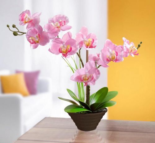 Nezničitelná květina! Pečlivá údržba této krásy není nutná - i když tato „umělá královna" je skutečně dokonale podobná živé orchideji! 10 jemně elegantních, propracovaných květů, které nikdy neuvadnou! Naprosto realistická: vypadá jako skutečná! Naplněný květináč pro lepší stabilitu.
