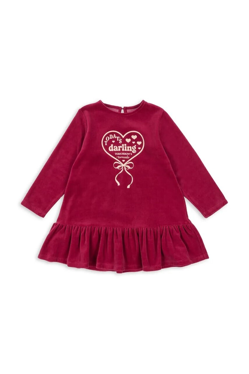 Dievčenské šaty Konges Sløjd VELOU DRESS GOTS bordová farba, mini, áčkový strih, KS104029