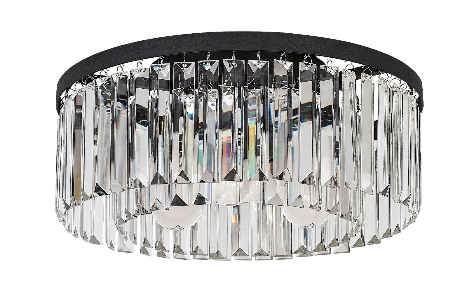 Stropné svietidlo Eloisa v klasickom štýle prinesie do vášho interiéru nádych luxusu a elegancie. Čierna kovová konštrukcia v kombinácii s bohatými krištáľovými prvkami vytvára jedinečný svetelný efekt, ktorý vynikne v obývacej izbe, spálni alebo reprezentatívnych priestoroch. Priehľadné sklenené závesy obklopujú svetelný zdroj a dodávajú svietidlu podobu honosného lustra, ktorý upúta pozornosť na prvý pohľad.