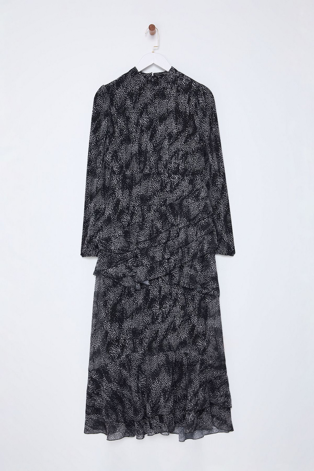 Trendyol Black Frilled Skirted Lined Woven Chiffon Dress