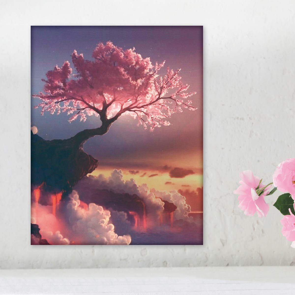 Na působivé scenérii růžově kvetoucí okrasné třešně na útesu se sami podílíte pomocí diamantového malování. Staňte se umělcem a doplňte tento nádherný obraz o umělé diamantové kamínky. Stačí je postupně lepit podle vyznačených políček a užít si spoustu zábavy. Výsledkem je atmosférický trojrozměrný třpytivý obraz. Růžově zbarvené květy okrasné třešně, která má velkolepé místo, září ve světle zapadajícího slunce. Na okraji útesu zapustila kořeny a vytvořila fascinující symbol odolnosti. Sada obsahuje speciální pero, voskové lepidlo, barevné diamantové kameny seřazené podle barev, plátno s rámem.
