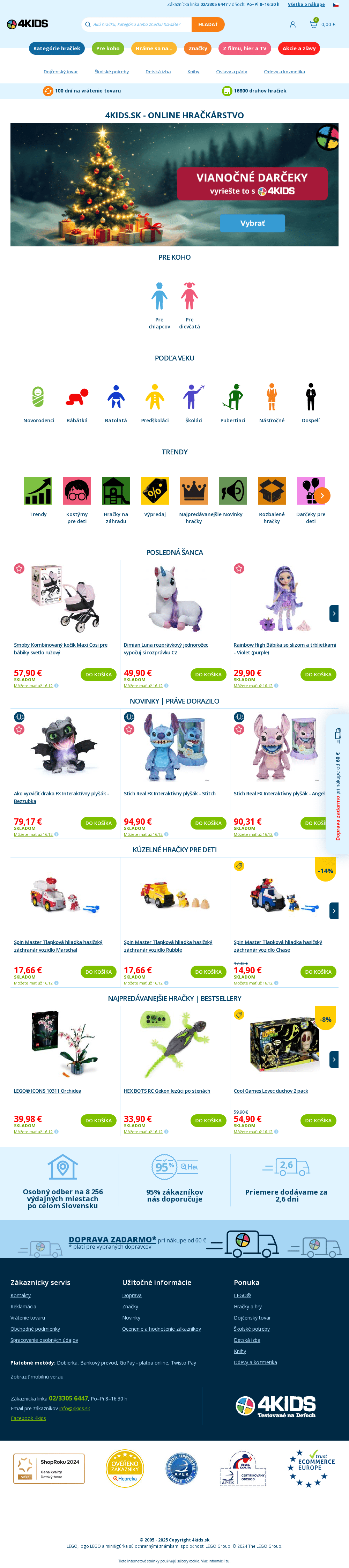 4kids.sk - Hračky a hry, dojčenský tovar. Potreby pre školu a voľný čas. Vybavenie detské uzby.