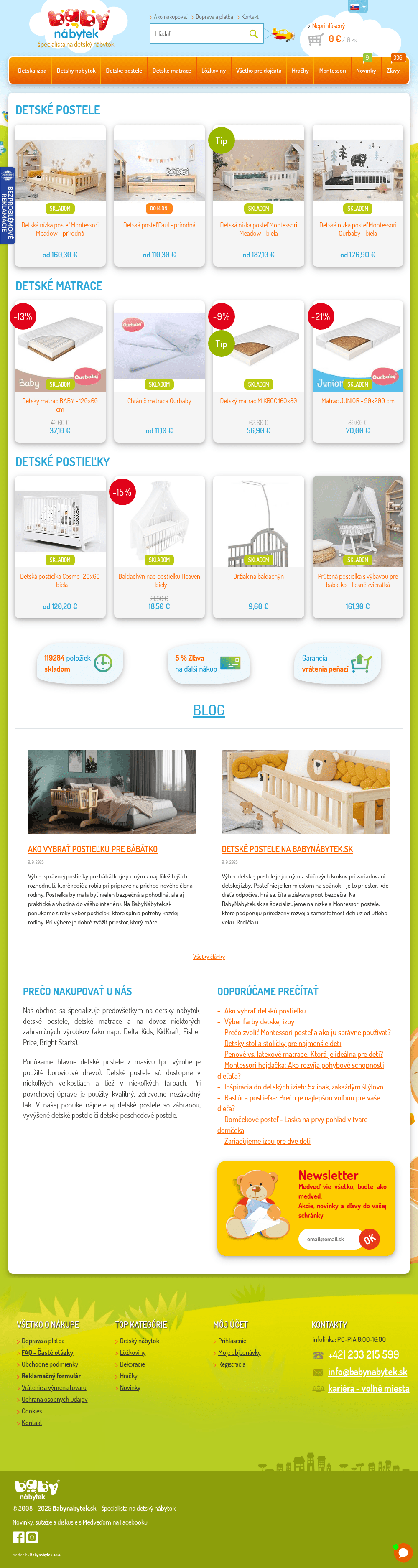 Kvalitný detský nábytok od postieľok cez postele až po detské matrace predávané pod vlastnou značkou Ourbaby. Lôžkoviny, dekorácie, hračky a mnoho ďalších produktov užitočných pri starostlivosti o dieťa.