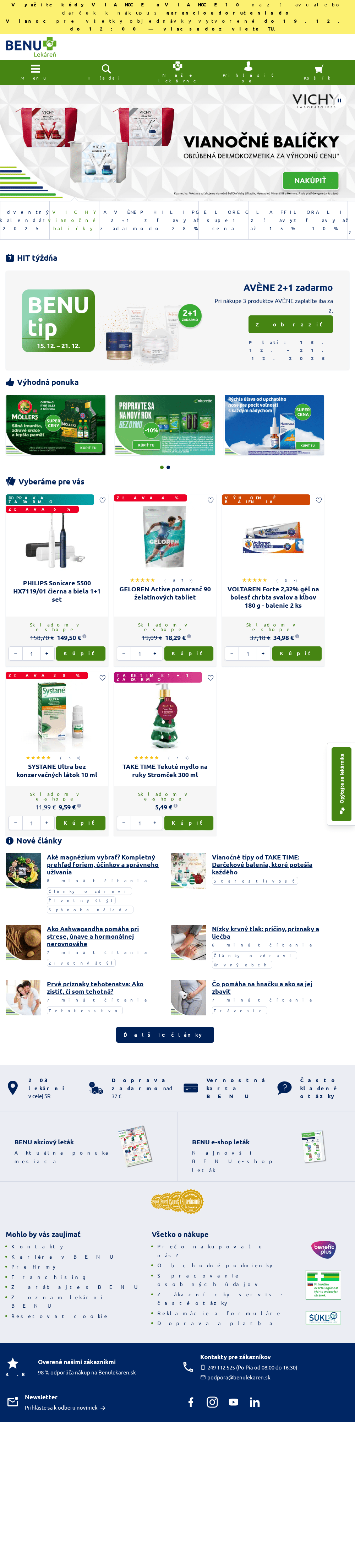 Online lekáreň BENU. Vol'nopredajné lieky, výživové doplnky, zdravá výživa, zdravotnícke pomôcky a ďalšie.