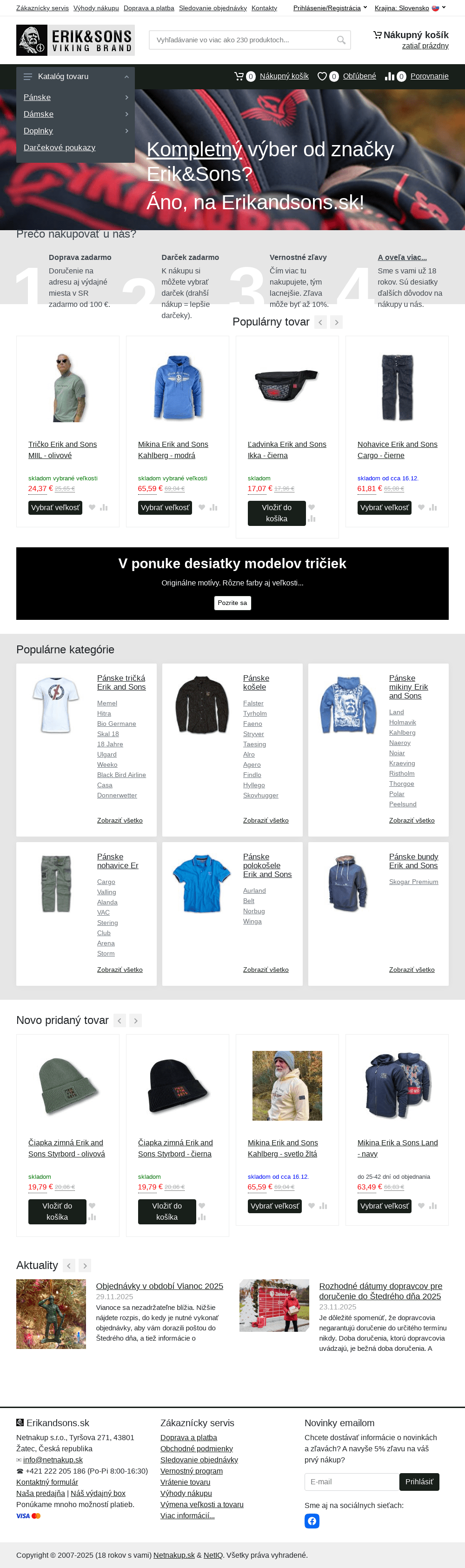Pánske a dámske oblečenie a doplnky značky Erik and Sons.
