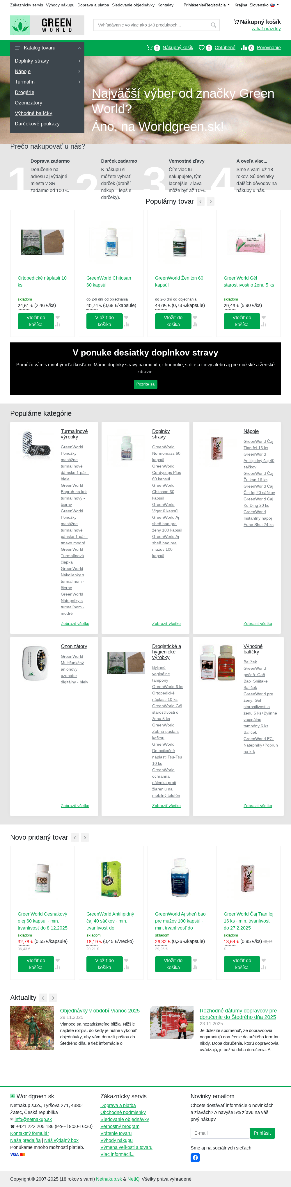 Všetko od značky Green World na jednom mieste. Produkty tradiční čínské medicíny. Doplnky stravy, nápoje, produkty z turmalínu a mnoho dalšieho.