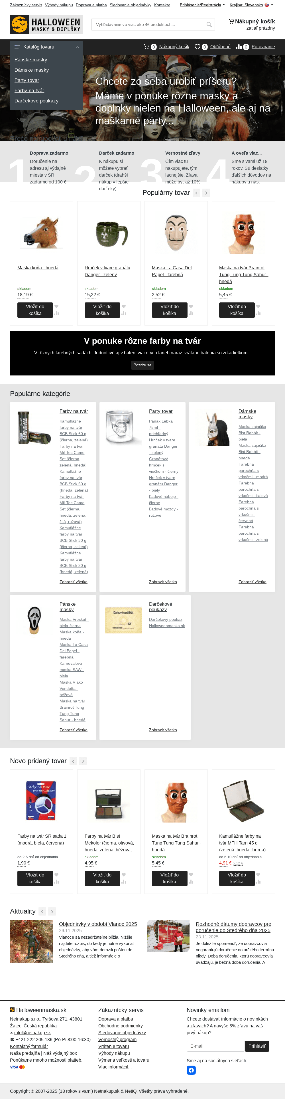 Halloween maska. Pánske, dámske a detské masky a party tovar.