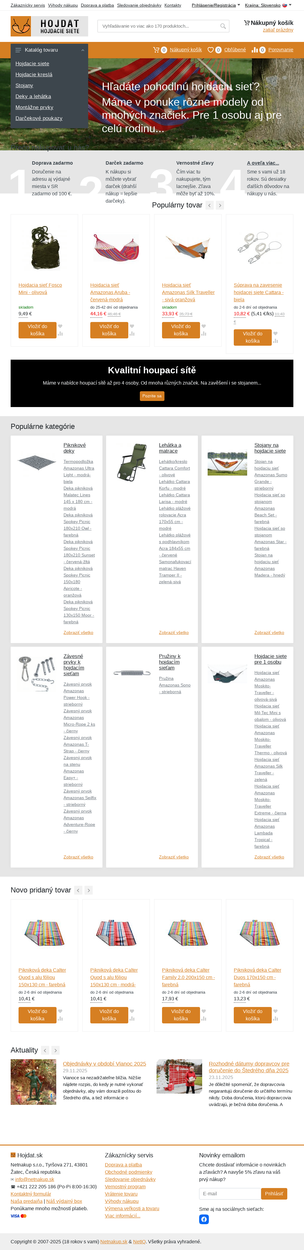 Hojdacie siete, hojdacie kreslá, stojany, deky, lehátka.