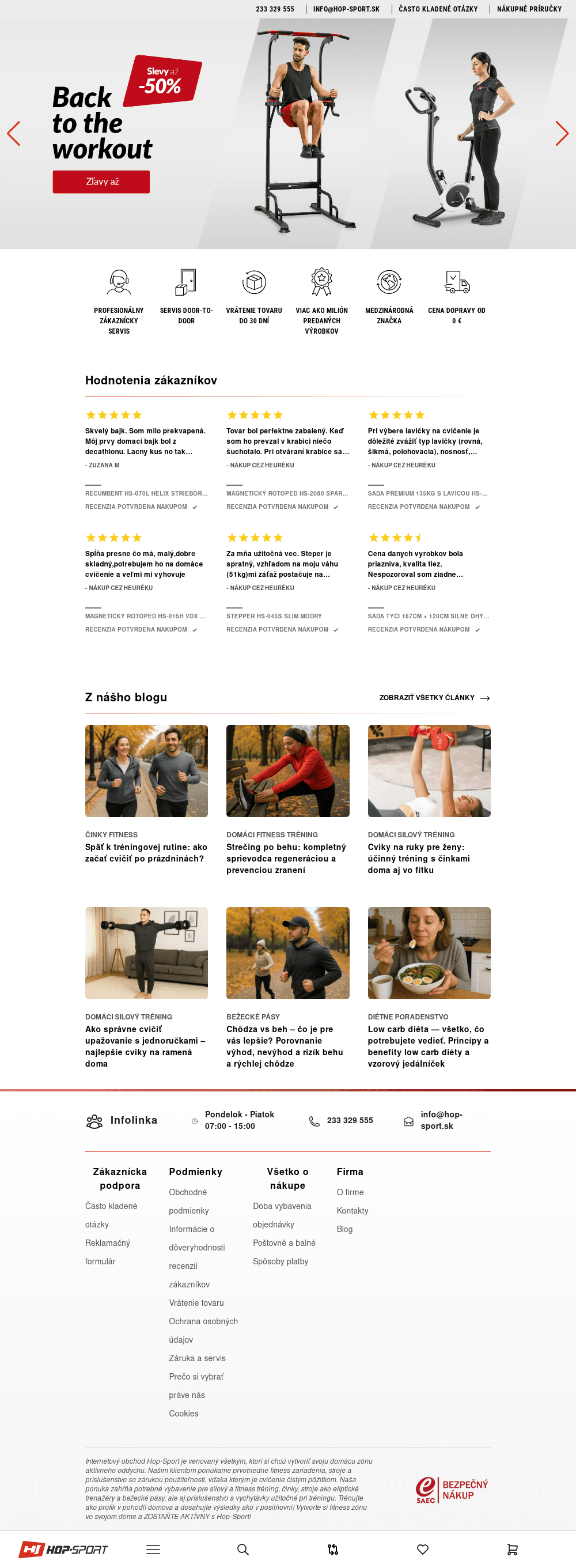 Športové potreby Hop-sport.sk - Oficiálný obchod. Športové vybavenie a potreby. Fitness zariadenie.