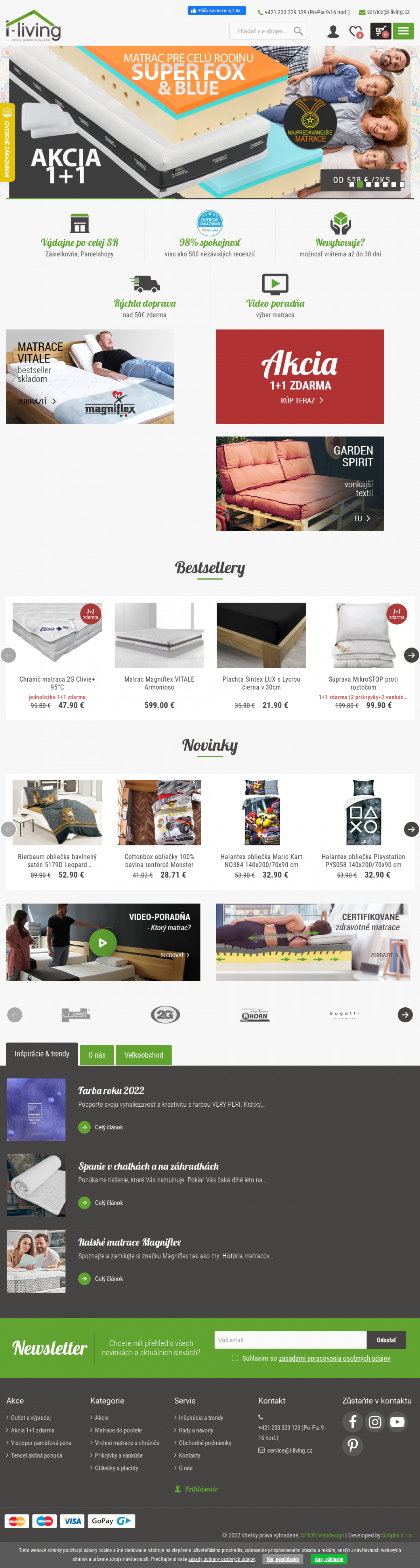 I-LIVING.sk - všetko pre zdravý spánok a krásne bývanie. Matrace, rošty, postele, bytový textil a ďalší.