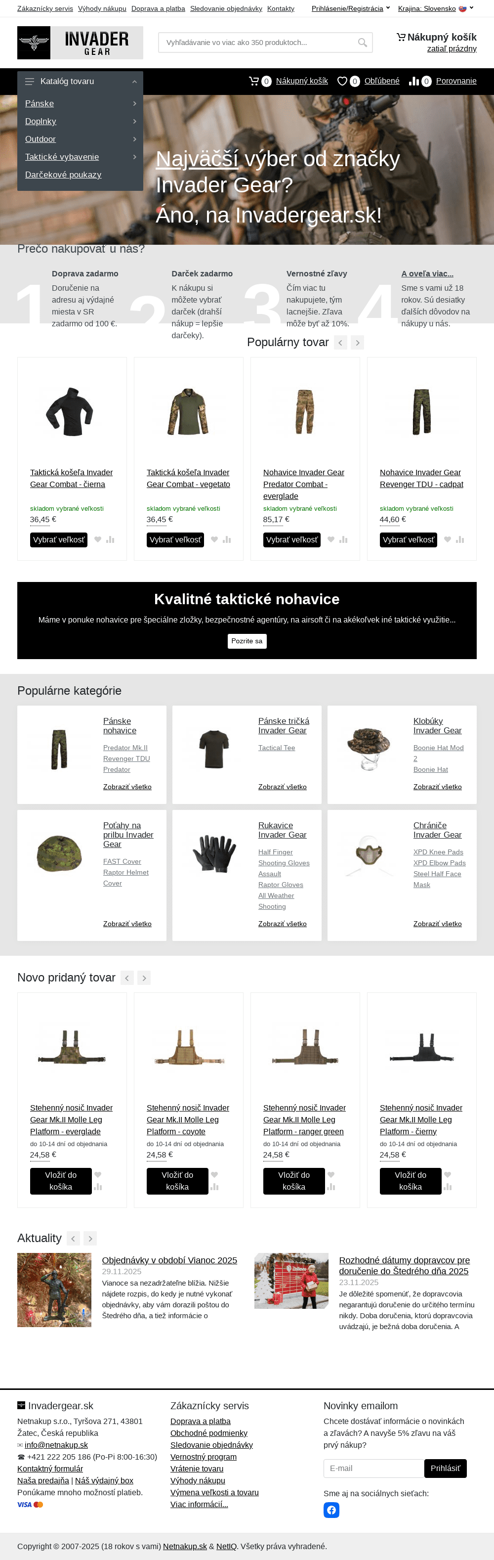 Kompletný sortiment pánskeho a dámskeho oblečenie a doplnkov švajčiarsko-rakúskej značky Invader Gear