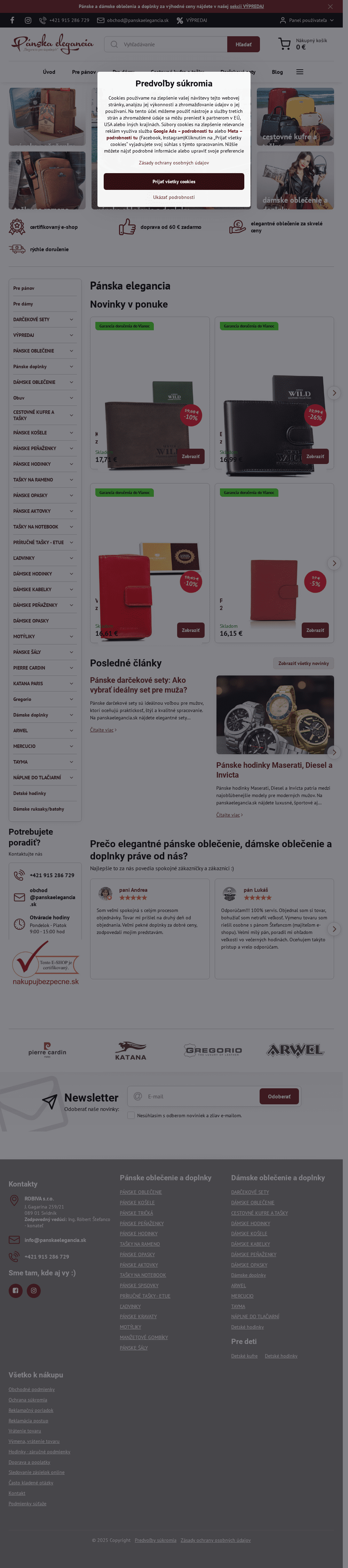 Široký výber pánske a dámske módy a doplnkov. Kvalitné elegantné i športové oblečenie.