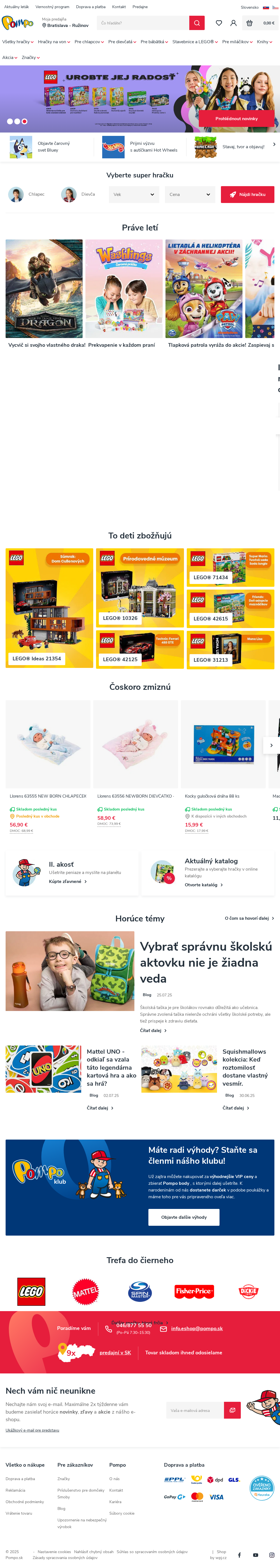 Prémiové značky hračiek - LEGO, Mattel, Hasbro, Zapf Creation, Ravensburger a mnoho dalších