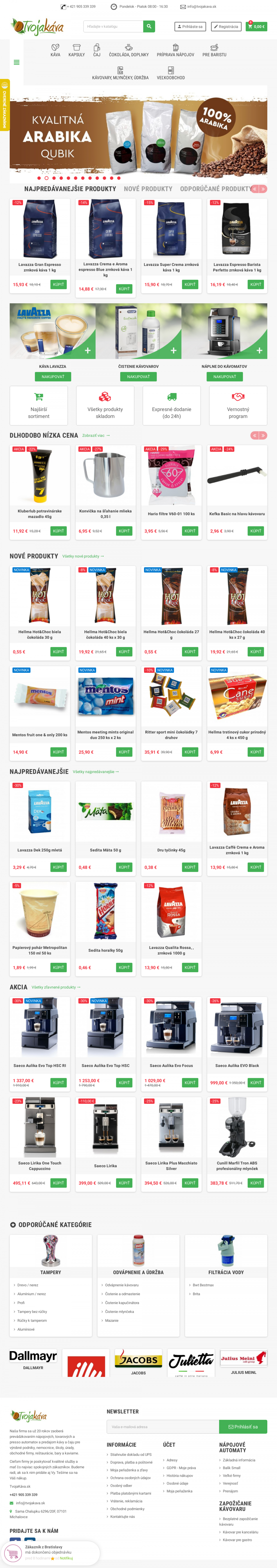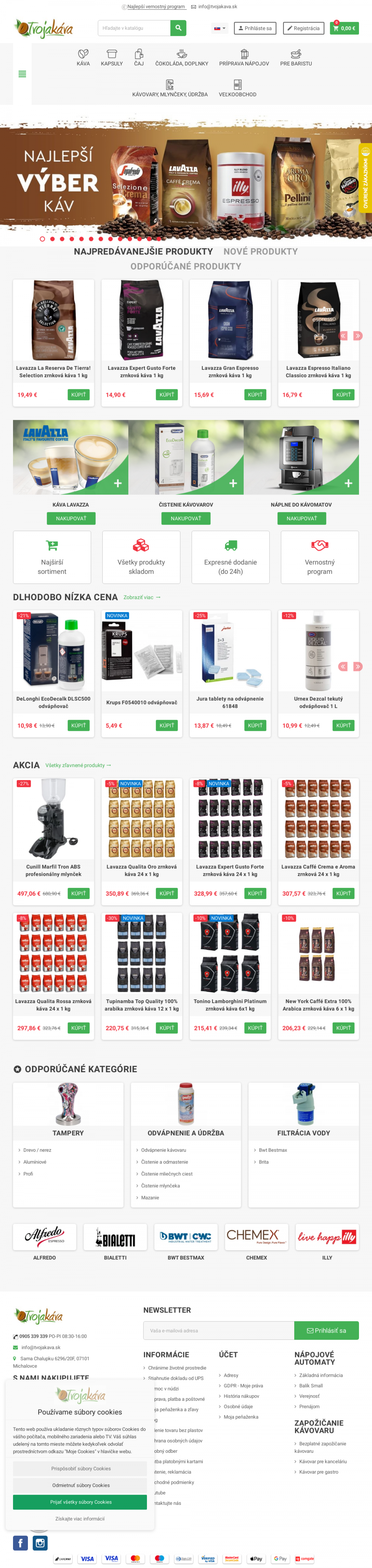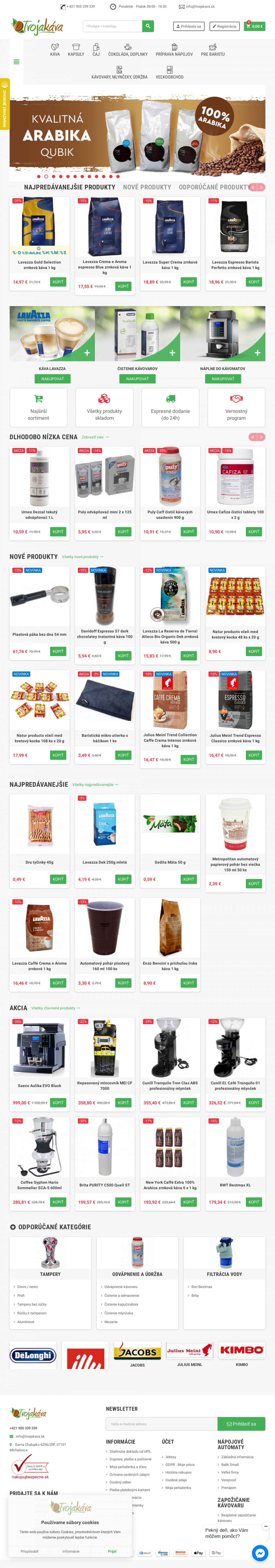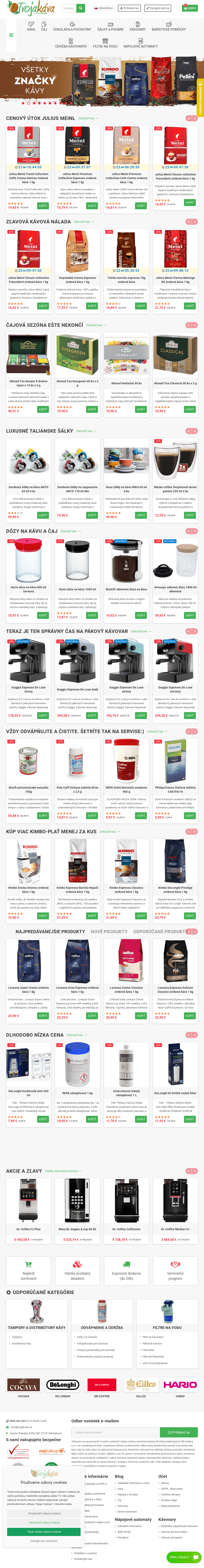 Široký sortiment kávy – kvalitnú značkovú kávu, plantážnu výberovú kávu, čerstvo praženú kávu vlastnej značky a čajov, kávových kapsúl, kávovarov, mlynčekov a všetkého, čo nejako súvisí s kávou.