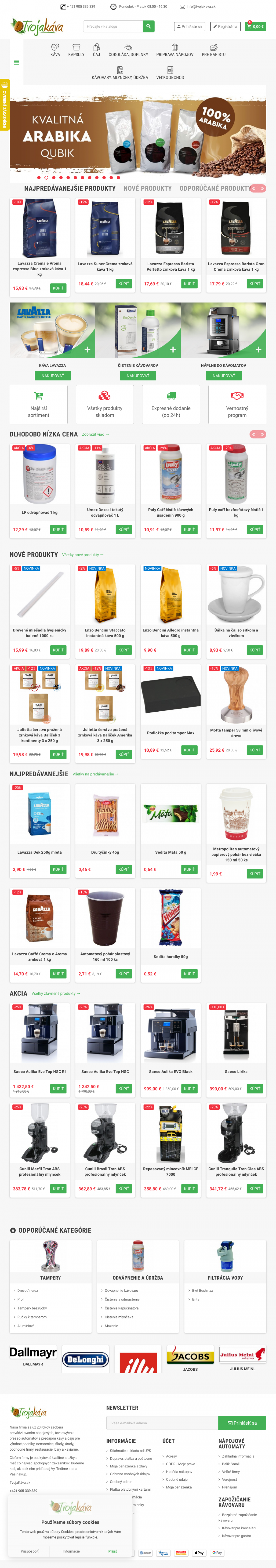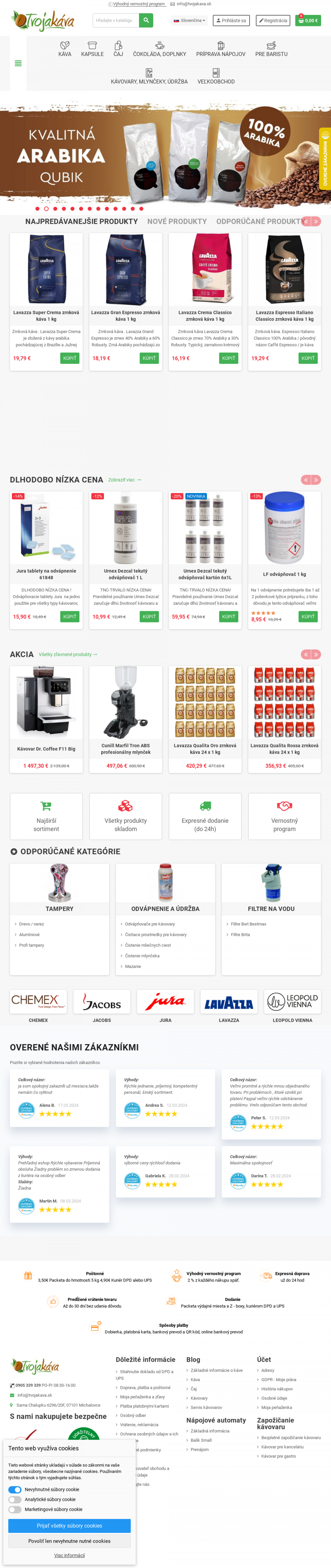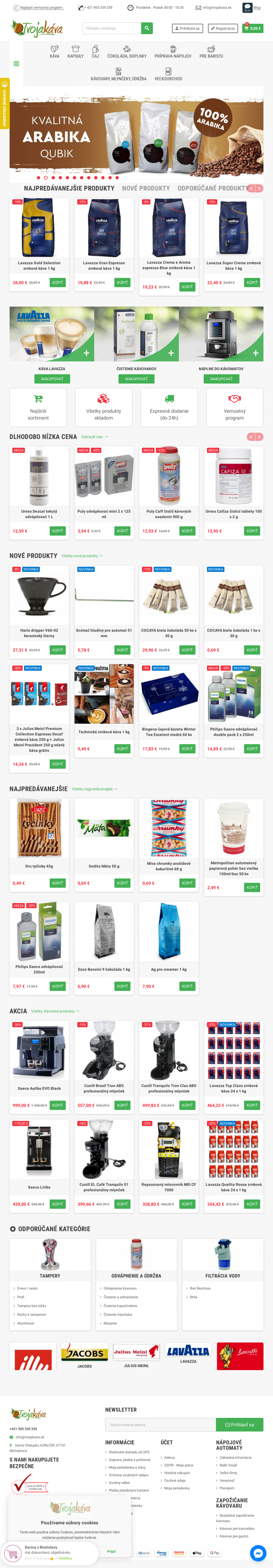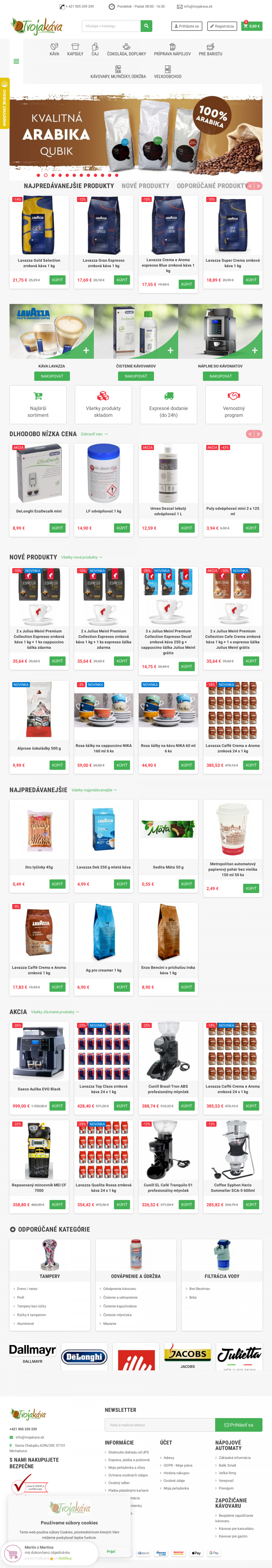 Široký sortiment kávy – kvalitnú značkovú kávu, plantážnu výberovú kávu, čerstvo praženú kávu vlastnej značky a čajov, kávových kapsúl, kávovarov, mlynčekov a všetkého, čo nejako súvisí s kávou.