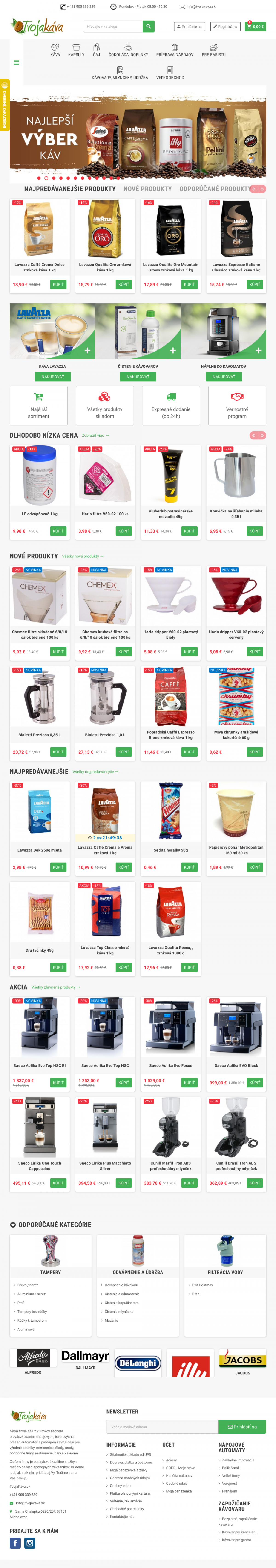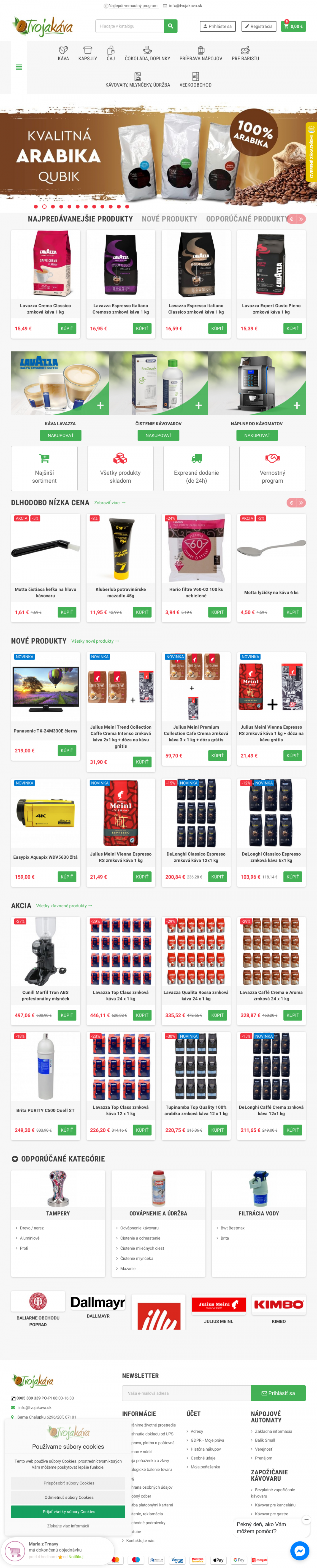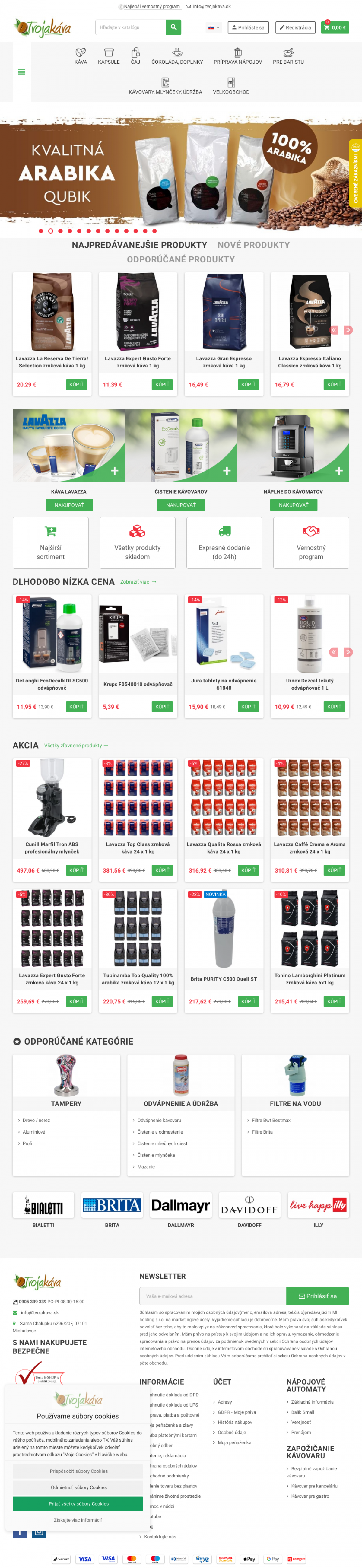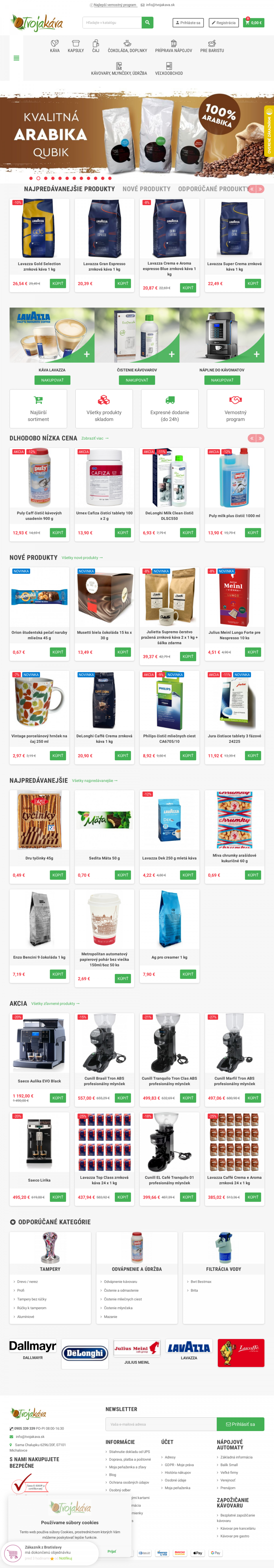 Široký sortiment kávy – kvalitnú značkovú kávu, plantážnu výberovú kávu, čerstvo praženú kávu vlastnej značky a čajov, kávových kapsúl, kávovarov, mlynčekov a všetkého, čo nejako súvisí s kávou.