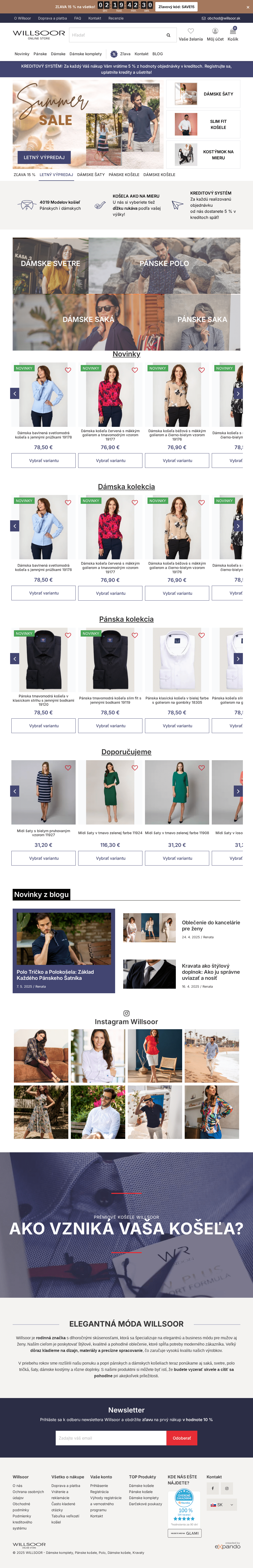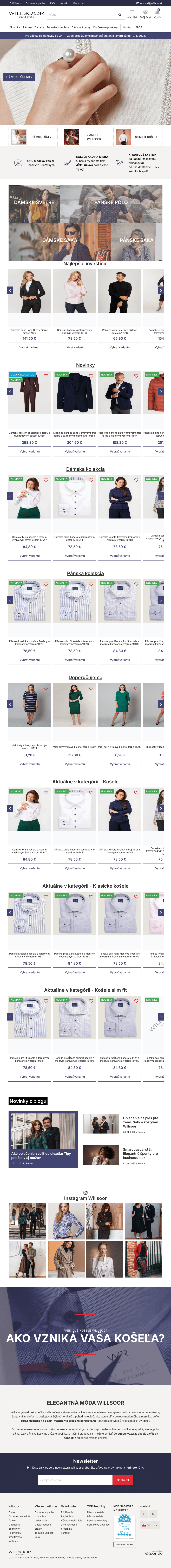 WILLSOOR - dámske a pánske košele. Svetre z kvalitných priadzí s prímesou angory, kašmíru alebo vlny, široká škála kravát, motýlikov a ďalšieho doplnkového tovaru.